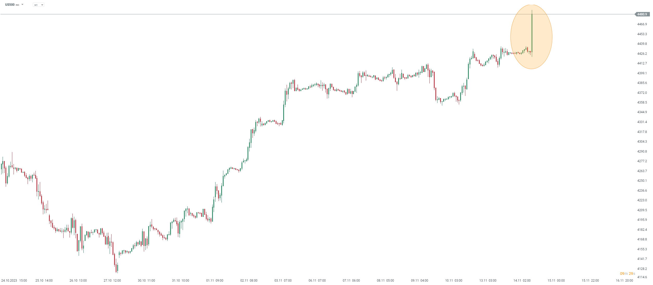 US500 jumped to the highest level since September 20, 2023 following softer-than-expected CPI reading from the United States. Source: xStation5