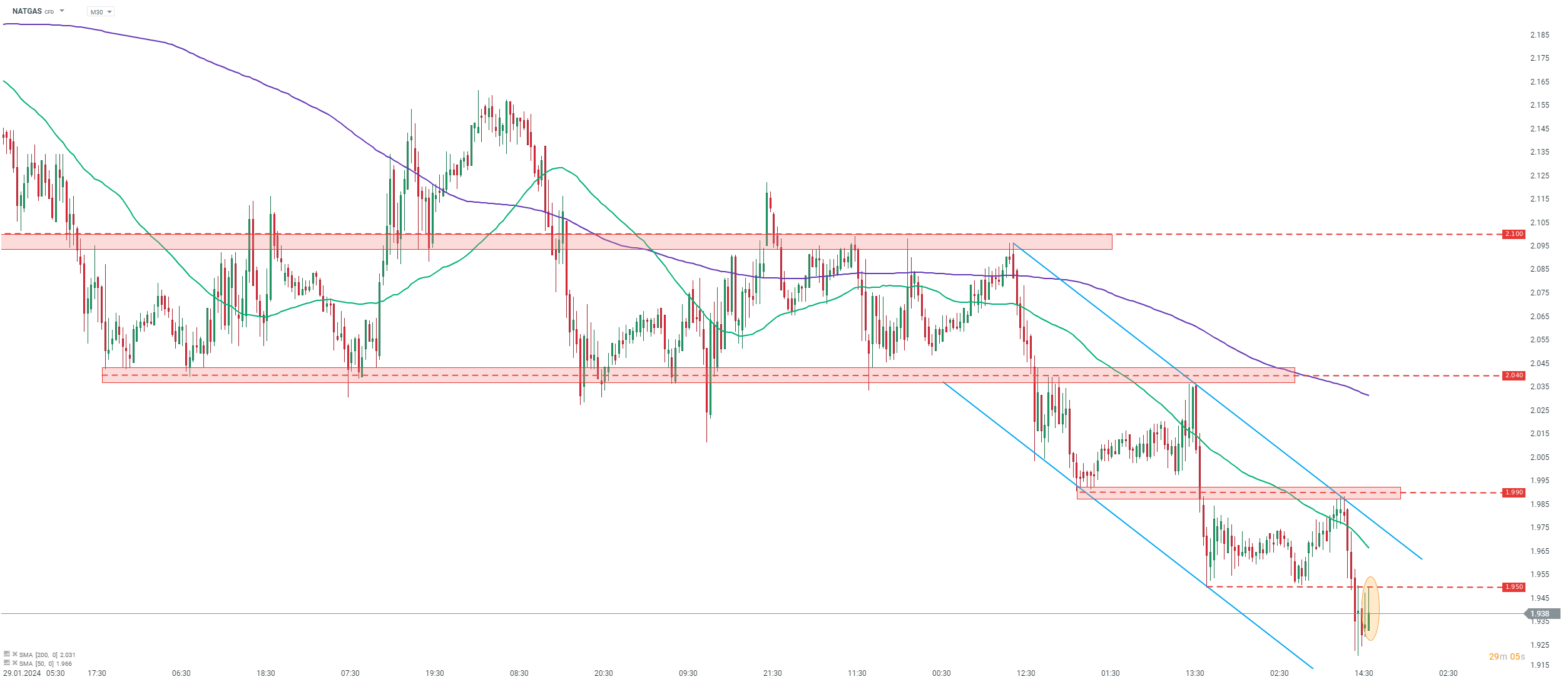NATGAS jumped slightly after release of inventory data but continues to trade within the short-term downward channel. Source: xStation5