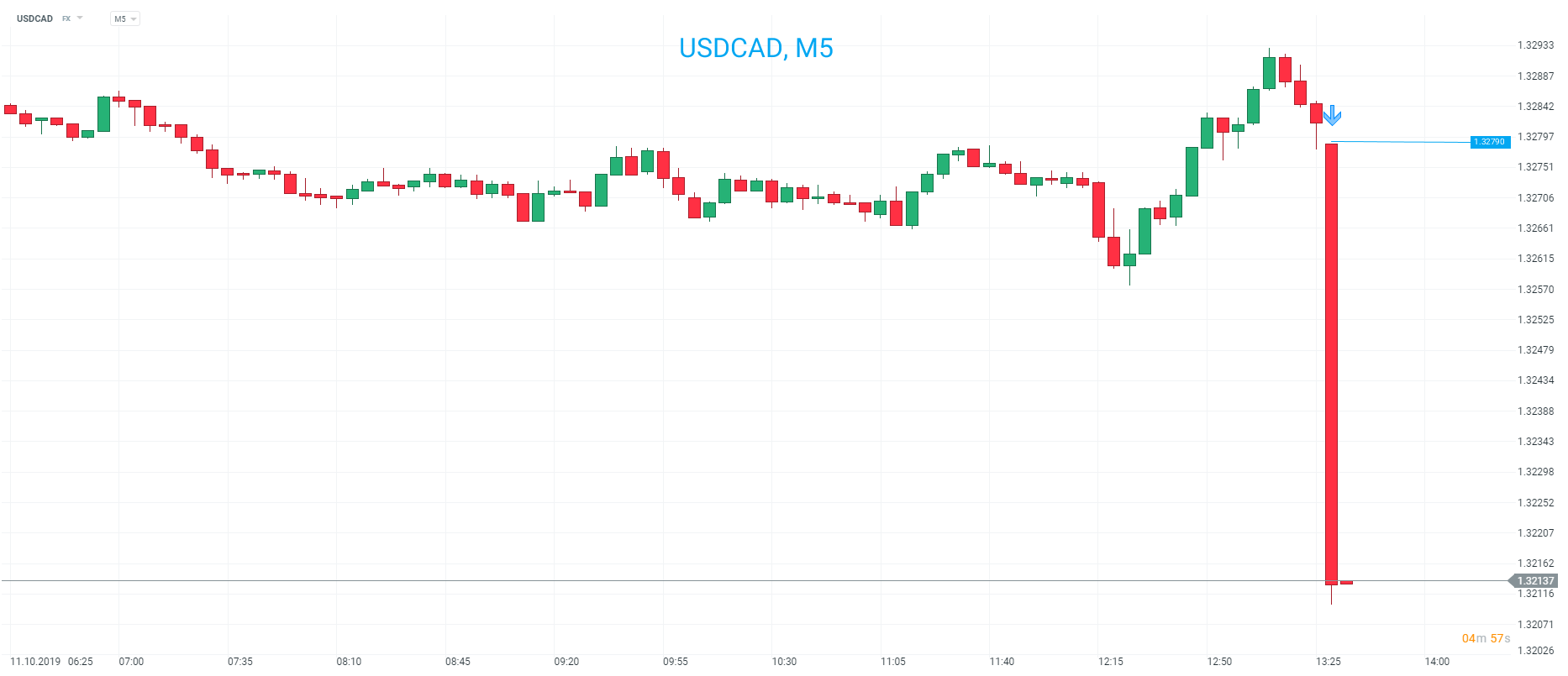 USDCAD has dropped sharply on the back of a strong jobs report from Canada with the market falling almost 70 pips in the 5 minutes after the release. Source: xStation