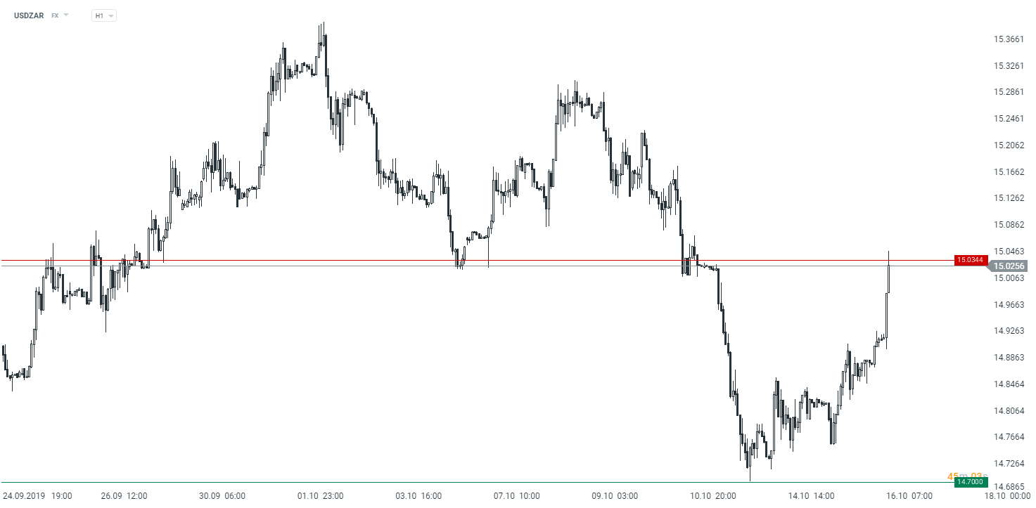 The USDZAR rises sharply following a report from Eskom. Source: xStation5