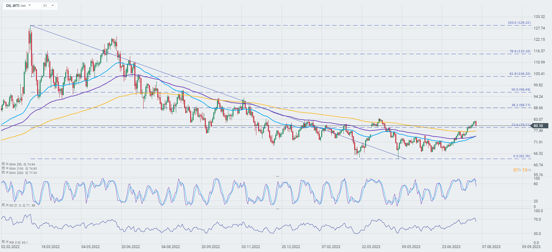 WTI oil is down more than 2.5% today. Source: xStation 5