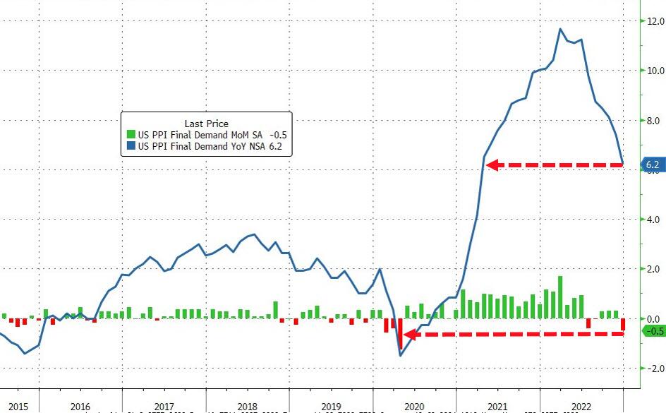PPI fell sharply in December. Source: Bloomberg via ZeroHedge