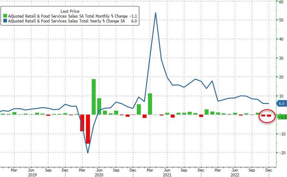 Fresh retail sales report showed that 10 of 13 retail categories fell last month. Source: Bloomberg via ZeroHedge