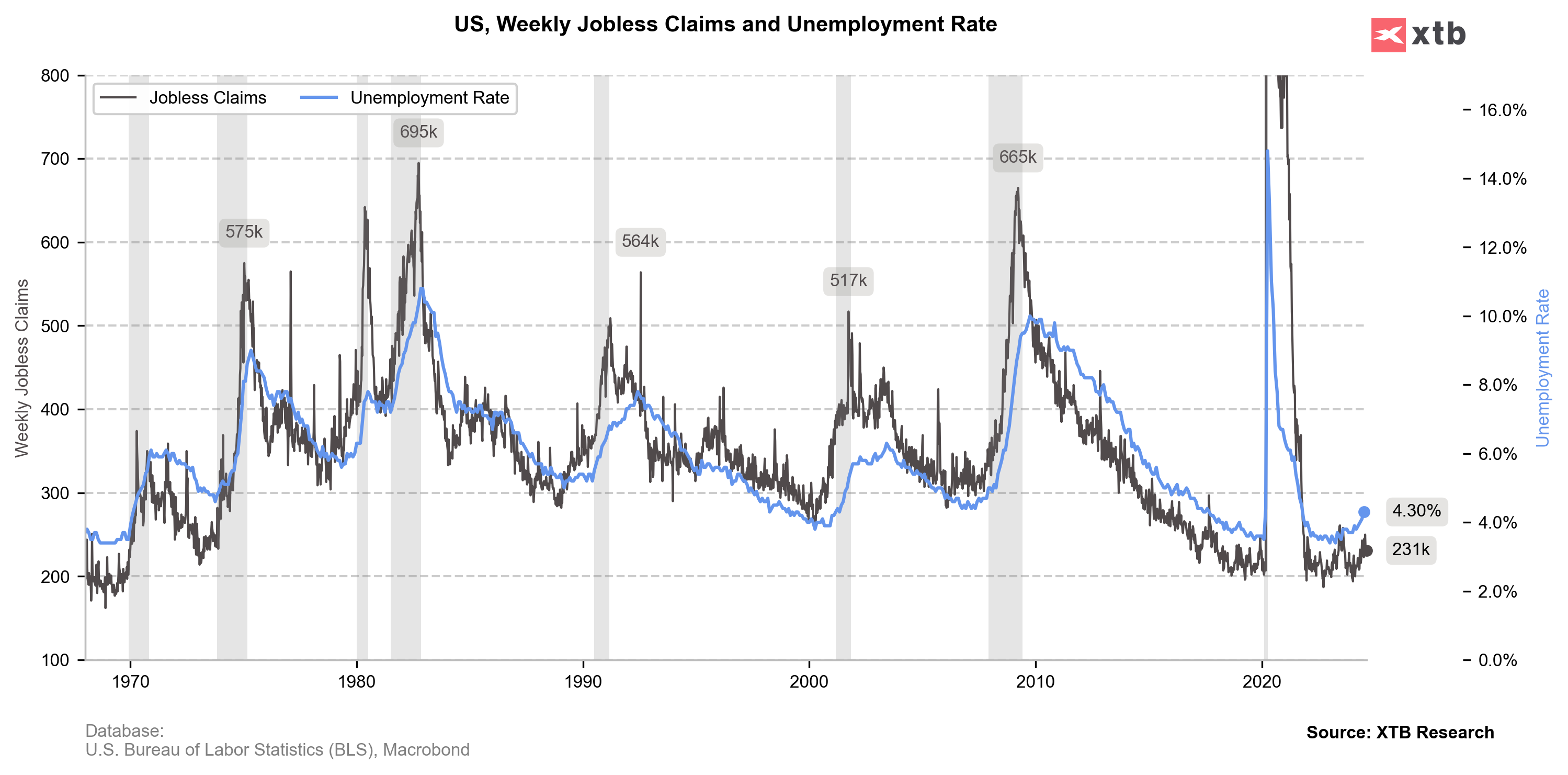 Market reaction is mostly bullish, with the dollar appreciation and decline in EURUSD. Overall, the market views the data optimistically, as a strong economy with decreasing inflationary pressure increases the chances of a soft landing scenario. Additionally, jobless claims do not indicate any deterioration in the labor market.