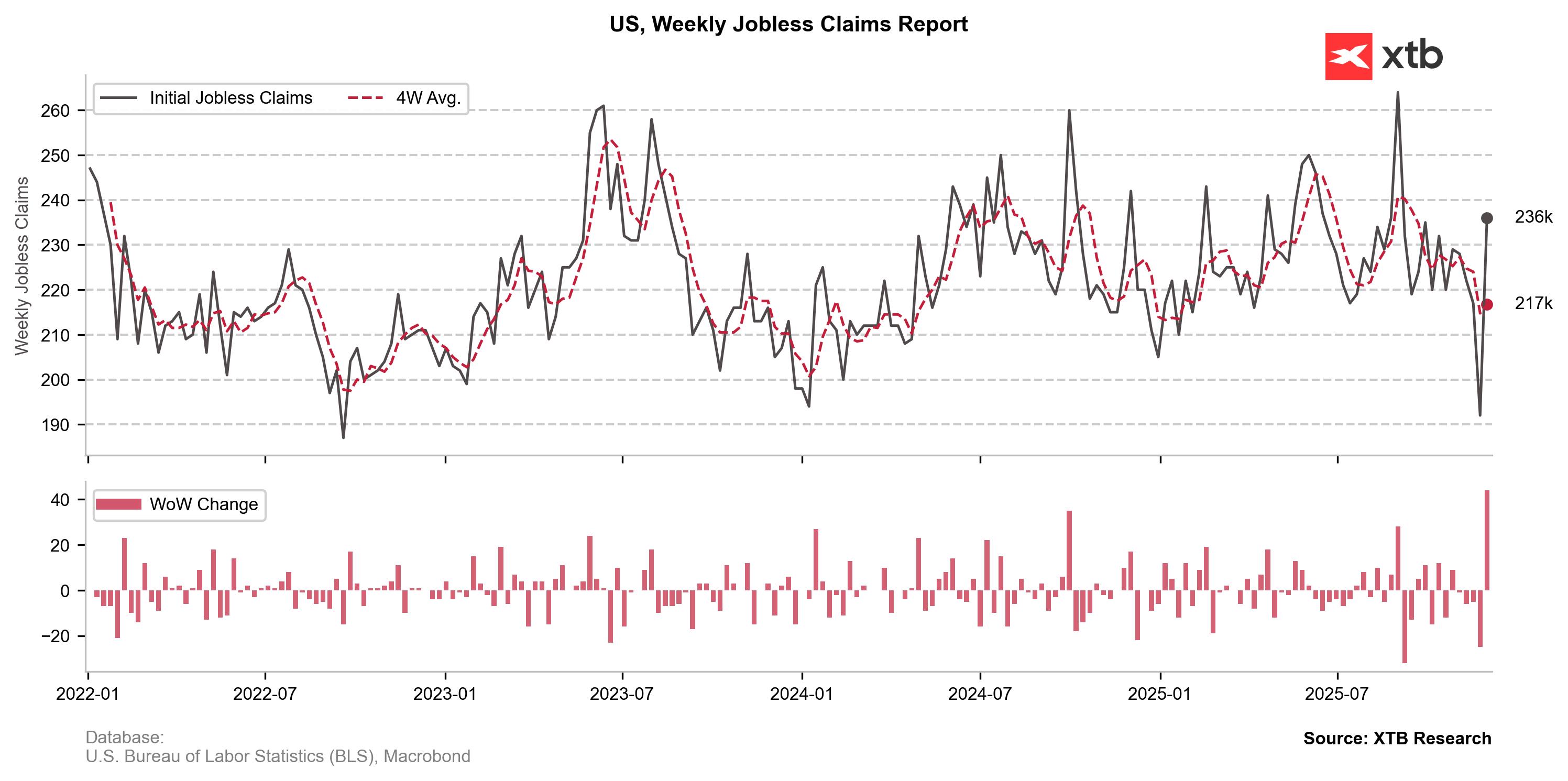 US Initial Jobless Claims: 236k (Forecast 220k, Previous 191k, Revised 192K)