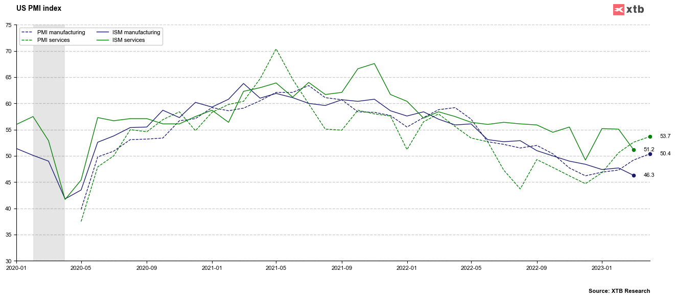 Data came better than expected by analysts and this means the US economy remains strong. Which gives some space for the FED to continue to tighten monetary policy. As in the EU, the PMI services came much better than manufacturing.