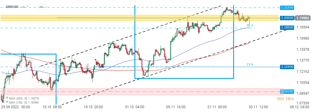 GBPUSD erased early losses and once again approached resistance at 1.20. Source: xStation5