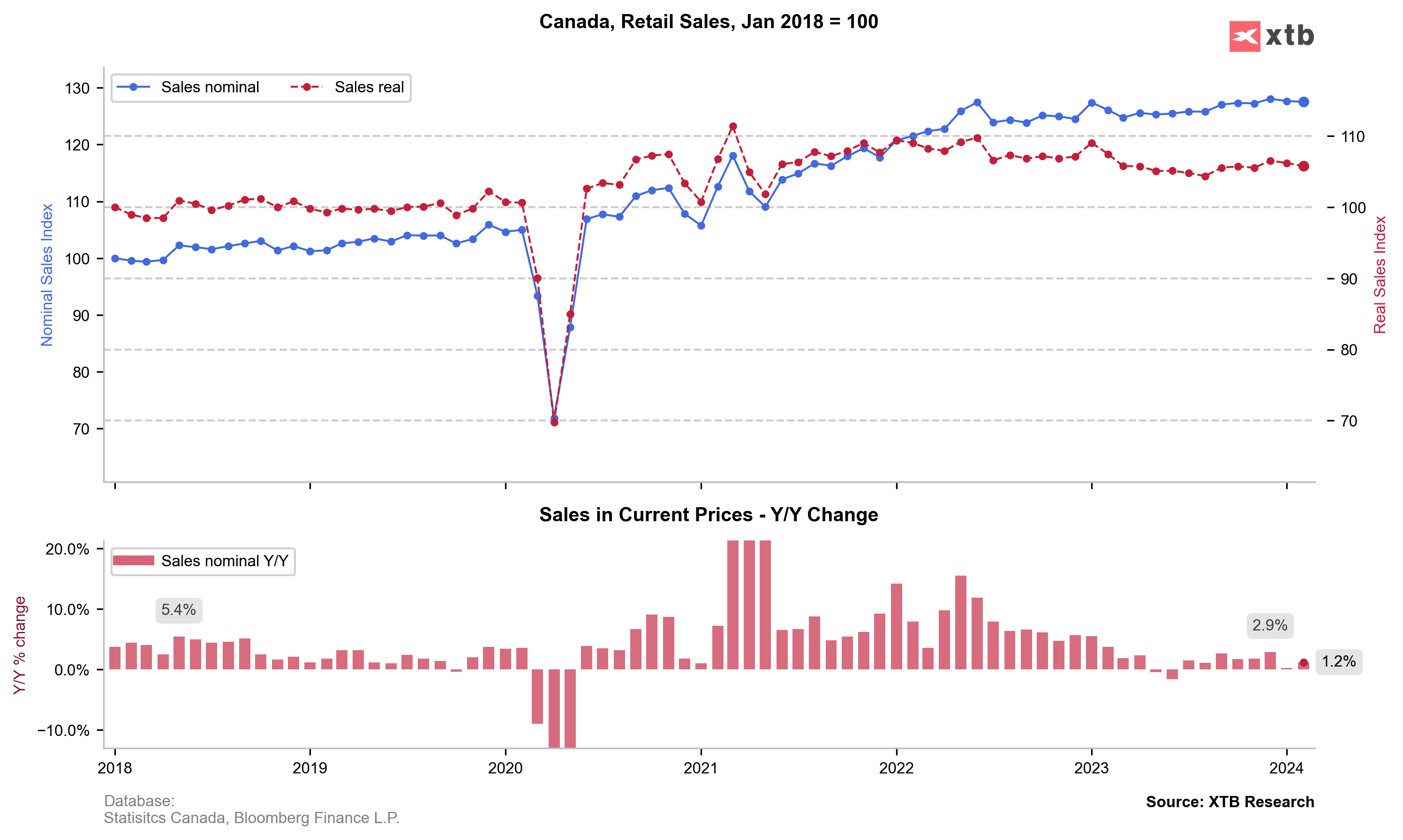Actual data turned out to be mixed. Canadian retail sales missed expectations while headline US durable goods orders beat expectations. On the other hand, core US durable goods orders growth turned out to be slightly weaker than expected, but still positive. Release can be seen as USD-positive and CAD-negative, and therefore a jump on USDCAD should not come as a surprise.