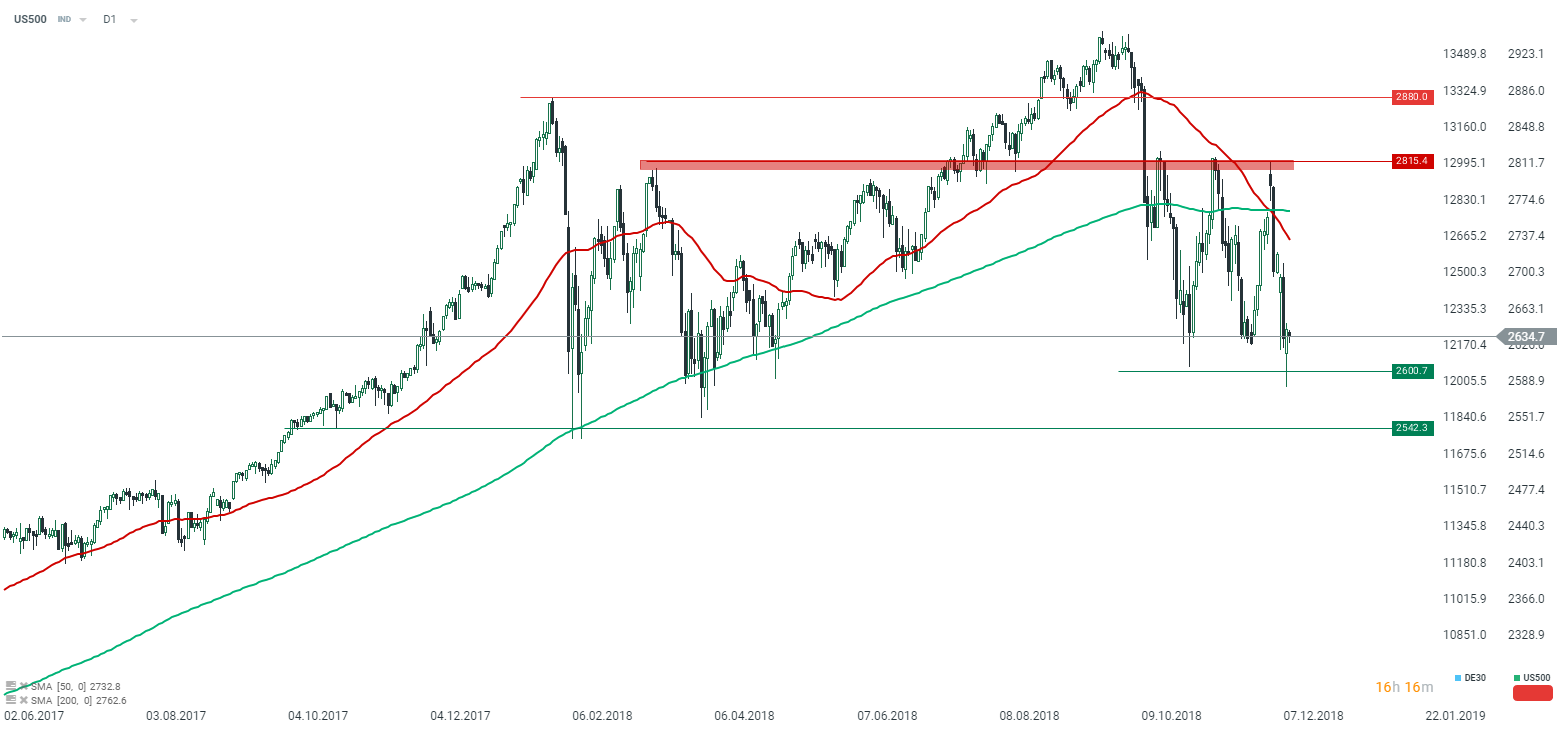 Despite heavy losses seen across European equity markets US indices managed to recover before the closing bell on Monday registering moderate gains. The SP500 (US500) rose 0.2%, the Dow Jones (US30) climbed 0.1% while the NASDAQ (US100) increased as much as 1%. Initially technology stocks were trading higher mostly due to Apple as the company was trading 2% down following a Chinese court’s ruling. It said that the US company had infringed on two Qualcomm patents and therefore it must stop selling seven of its most popular iPhones in the world’s second largest economy. However, this ban does not include the newest models - iPhone XS, iPhone XS Plus and iPhone XR. Let us remind that Qualcomm, the US microchip maker, claims that Apple has violated two of its patents in the iPhone 6S, iPhone 6S Plus, iPhone 7, iPhone 7 Plus, iPhone 8, iPhone 8 Plus and iPhone X. The mentioned patents allow people to edit and change the size of photos on a device, the US company says. However, the sell-off seen in Apple’s shares ended after the firm said that it was still selling all iPhone models in China and that it had filed a request for “reconsideration” with the court. As a result, the stock ended Monday’s trading with a 0.7% increase and it gained in after-hours trading. On top of that, it is worth mentioning Microsoft and Facebook as both gained markedly finishing higher by 2.6% and 3% respectively. Why did Wall Street open lower yesterday? The prime reason seems to have been the Brexit story and a Theresa May’s speech where she announced to delay the vote on a deal for the UK’s exit from the European Union. Nevertheless, she did not specify a date when the vote could take place. It means subsequent days or even weeks with uncertainty which is expected to weigh on UK GDP in the final three months of the year.