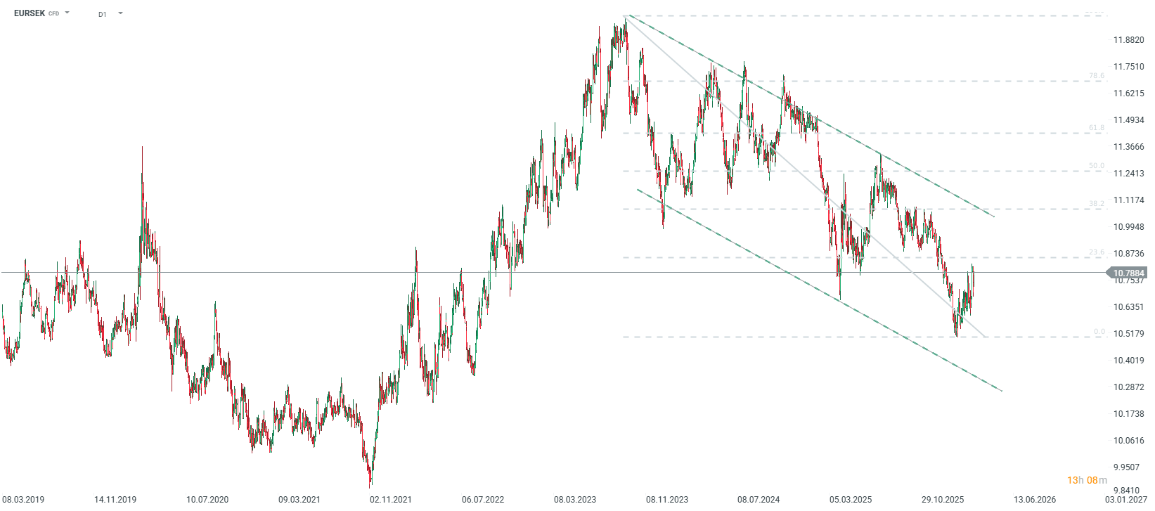 EURSEK remains relatively low, but 2022 marked the beginning of a wave of SEK weakness against the Euro during the high oil and gas price shock. Potentially, the ECB could raise rates faster than the Riksbank, which may shift the bias toward the upside. Source: xStation5