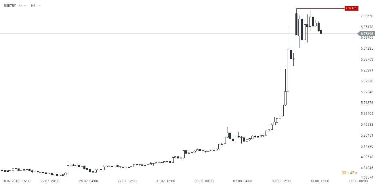 After numerous attempts to break higher, the USDTRY is finally retreating a bit, but do not expect any long-lived reversal until things are sorted out. Source: xStation5