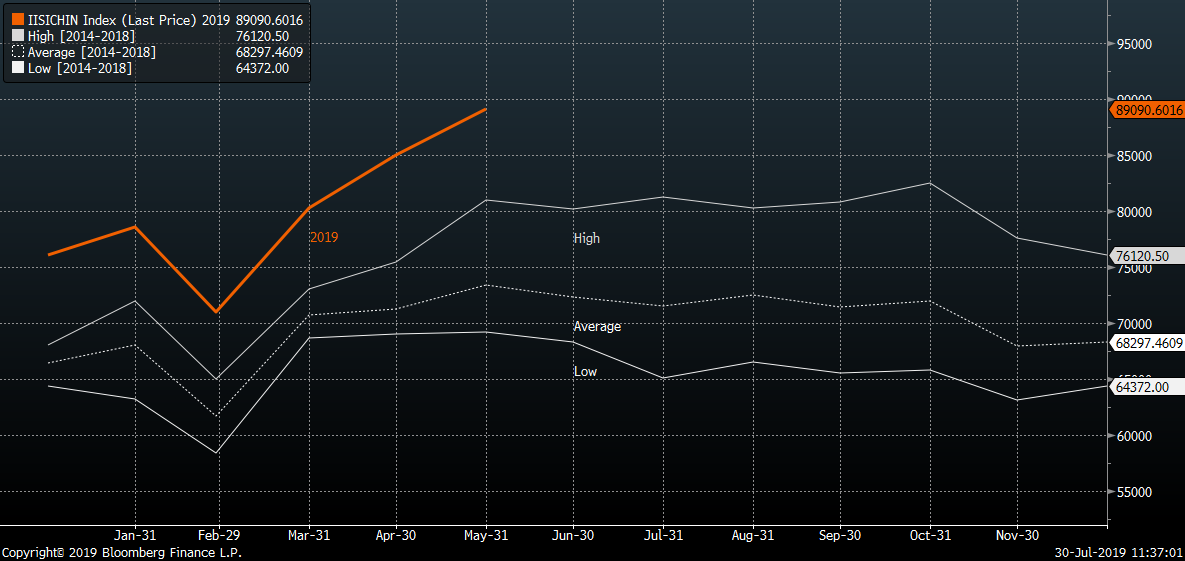 - Majority of nickel demand still comes from steel producers. Record steel production in China on the monthly basis