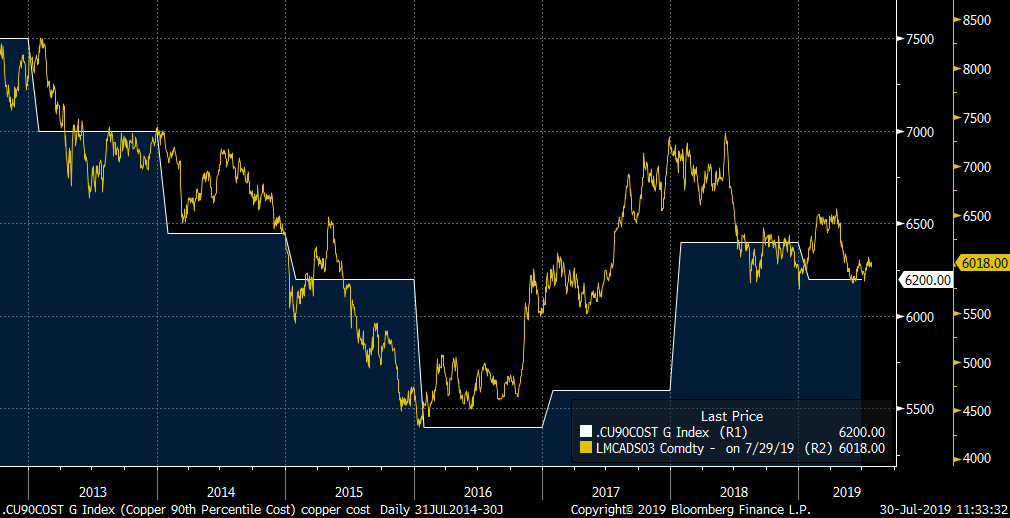 - Copper production costs (in 90% cases) hover around $6200 per ton, it supports copper prices (keep in mind about increased demand for copper from electric car producers)