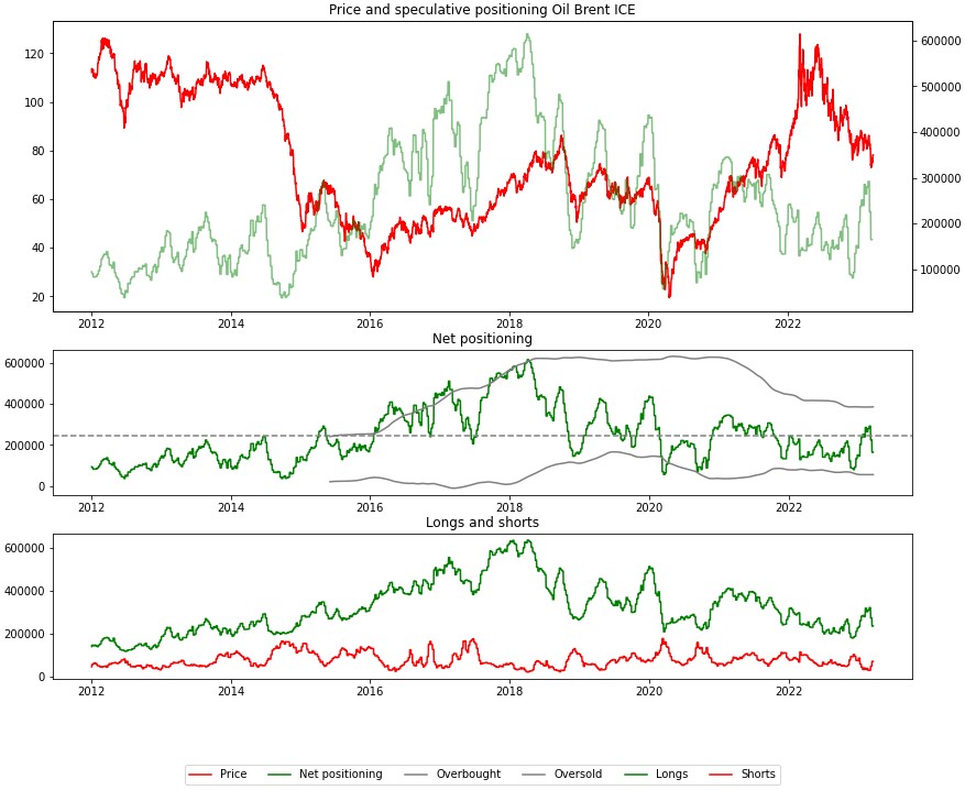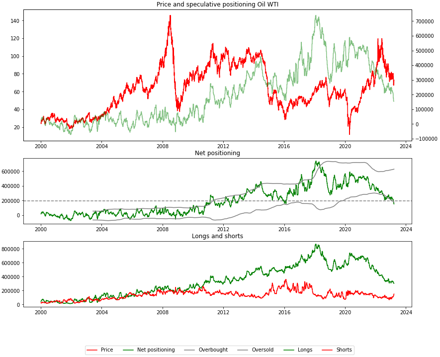 Data on positioning shows a very bearish sentiment recently - extremely low on WTI and drop in positioning on Brent