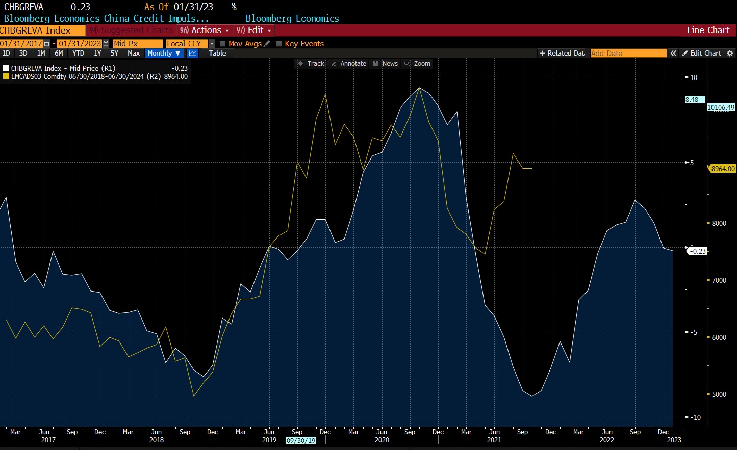 Current credit impulse is the weakest since 2006-2006 but back then copper prices rallied from $4,000 to $8,000 per tonne