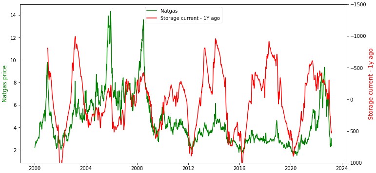 Comparative inventories (1-year nominal change in inventory level) remain relatively high (inverted axis on the chart below). On the other hand, pace of increases have slowed in recent weeks