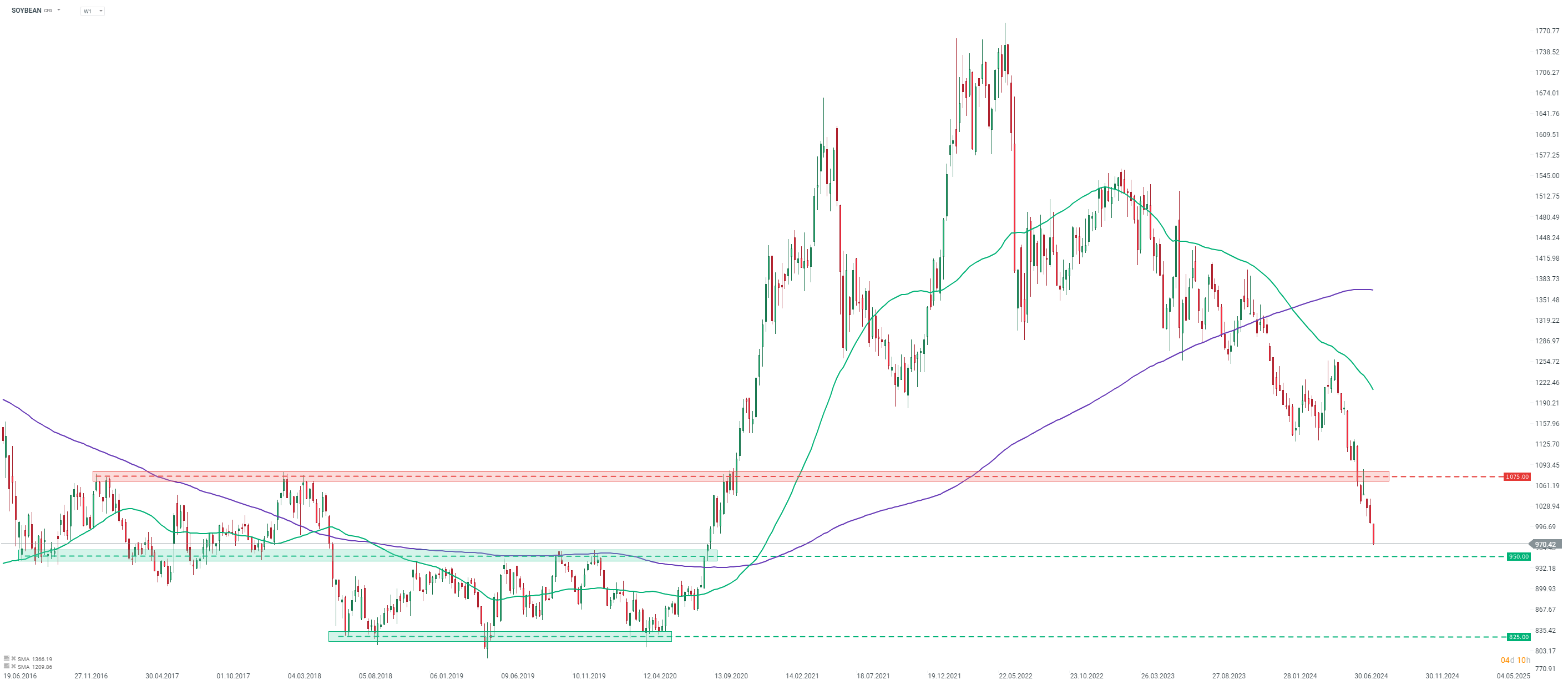 SOYBEAN is in freefall as news of ample supply outweigh news of increased demand from China. Price dropped below $10 per bushel for the first time in almost 4 years and is down 25% year-to-date. The next potential support zone to watch can be found in the $9.50 per bushel area, marked with price reactions from 2016-2020 period. Source: xStation5