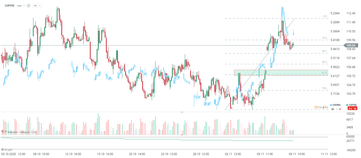 Recent price moves on the coffee market are mostly driven by the US dollar. Source: xStation5