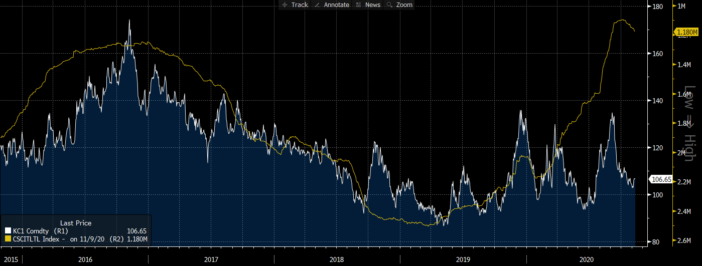 On the other hand, coffee stockpiles continue to rebound hinting that market is coping with significant supply