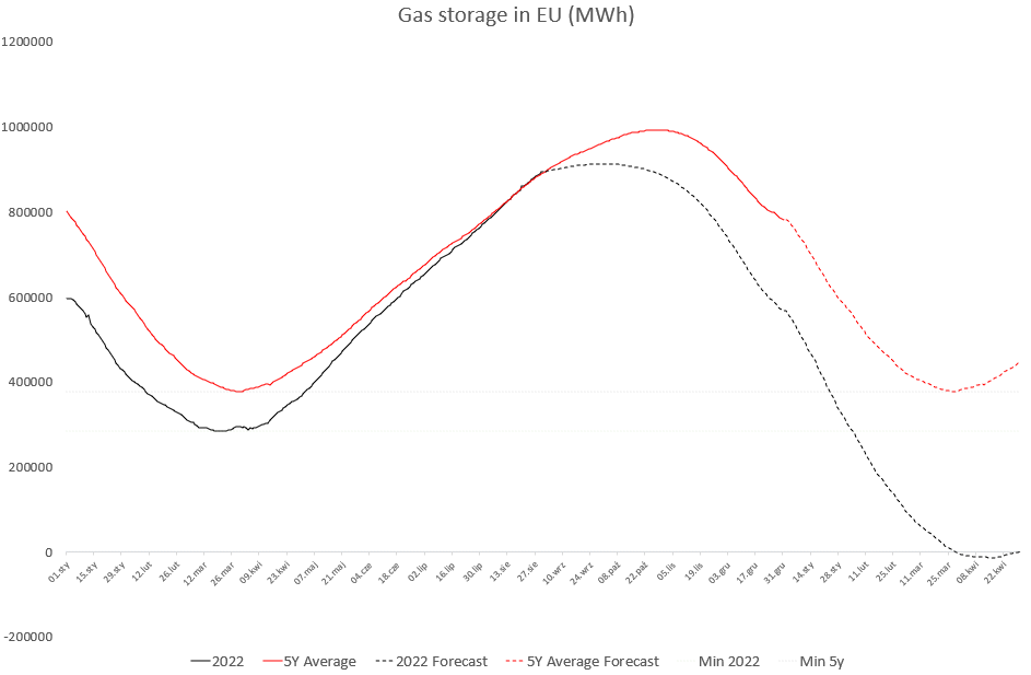 If imports from Russia do not resume and no other actions are taken, EU will run out of gas by the end of March 2023. Source: Bloomberg, XTB