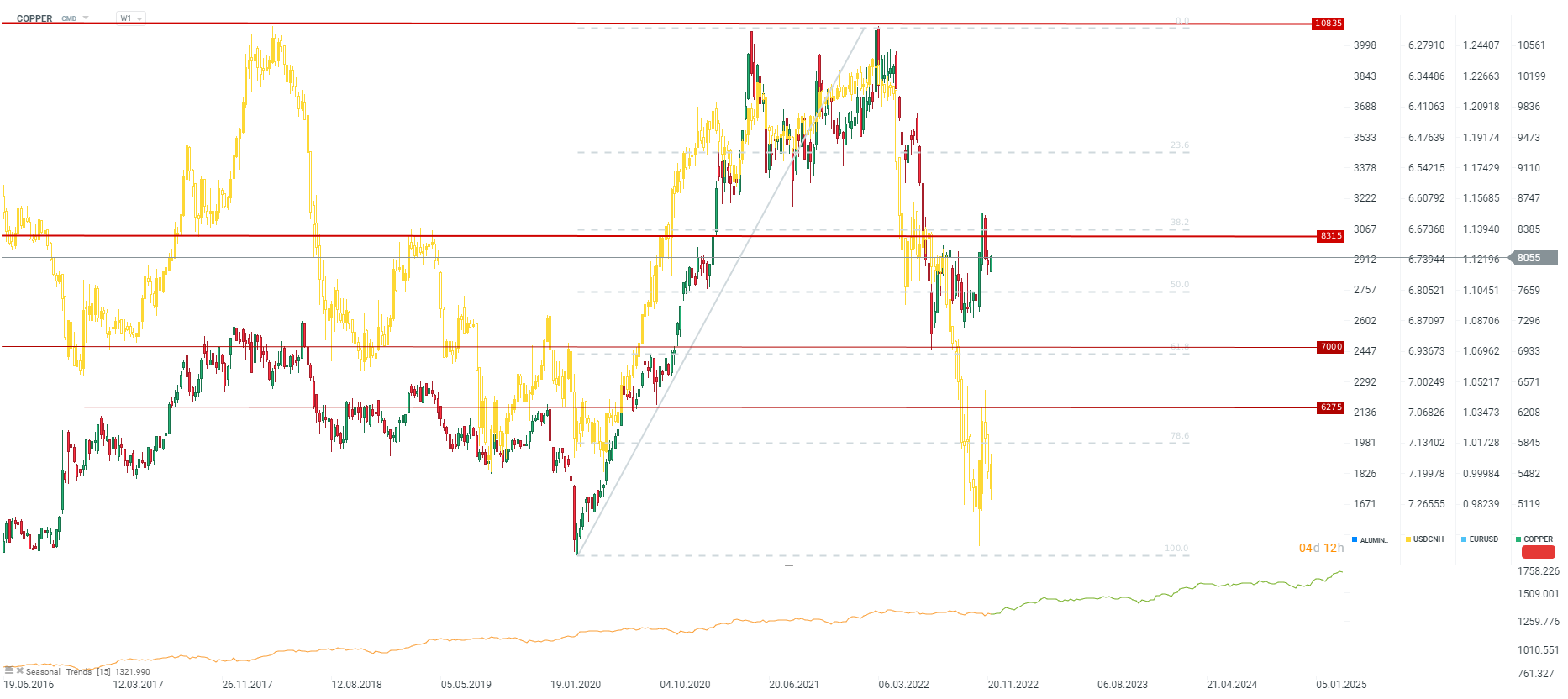 Copper trades near in the $8,000 area. Interestingly, there was no material improvement on the yuan market. Source: xStation5