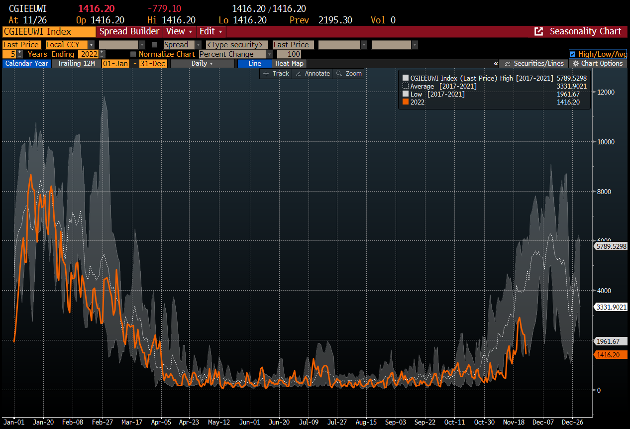 Freeport LNG terminal in the United States is expected to resume operations in mid-December. Its exports capacity will climb to 2 bcf per day at the beginning of January 2023