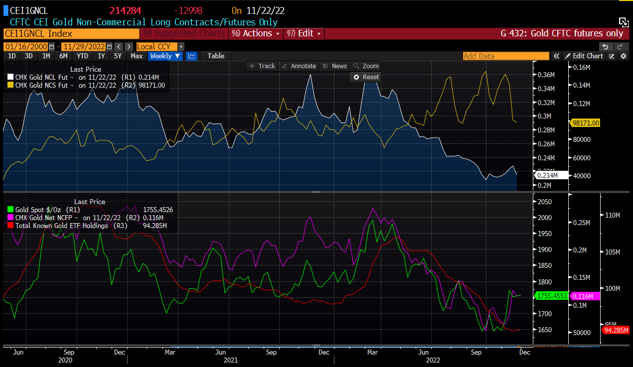 Gold price bounced amid pick-up in net speculative positioning. However, increase in net position was driven mostly by reduction in short positions, rather than increase in longs. Source: Bloomberg