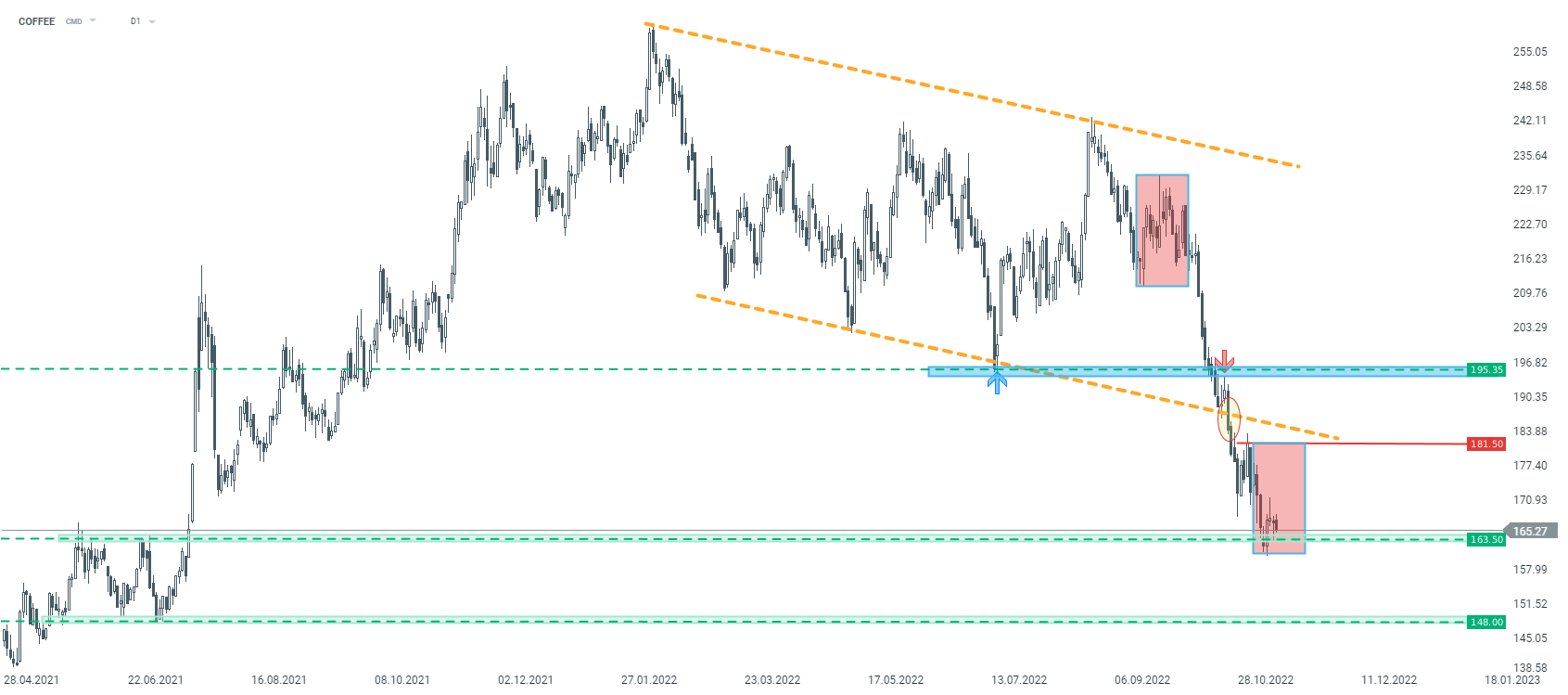 COFFEE dropped to a fresh 2-month low and trades over 30% below late-August high. An attempt to launch a recovery move in recent days looks to have failed as price turned lower again on an improved data on inventory pending assessment. Source: xStation5