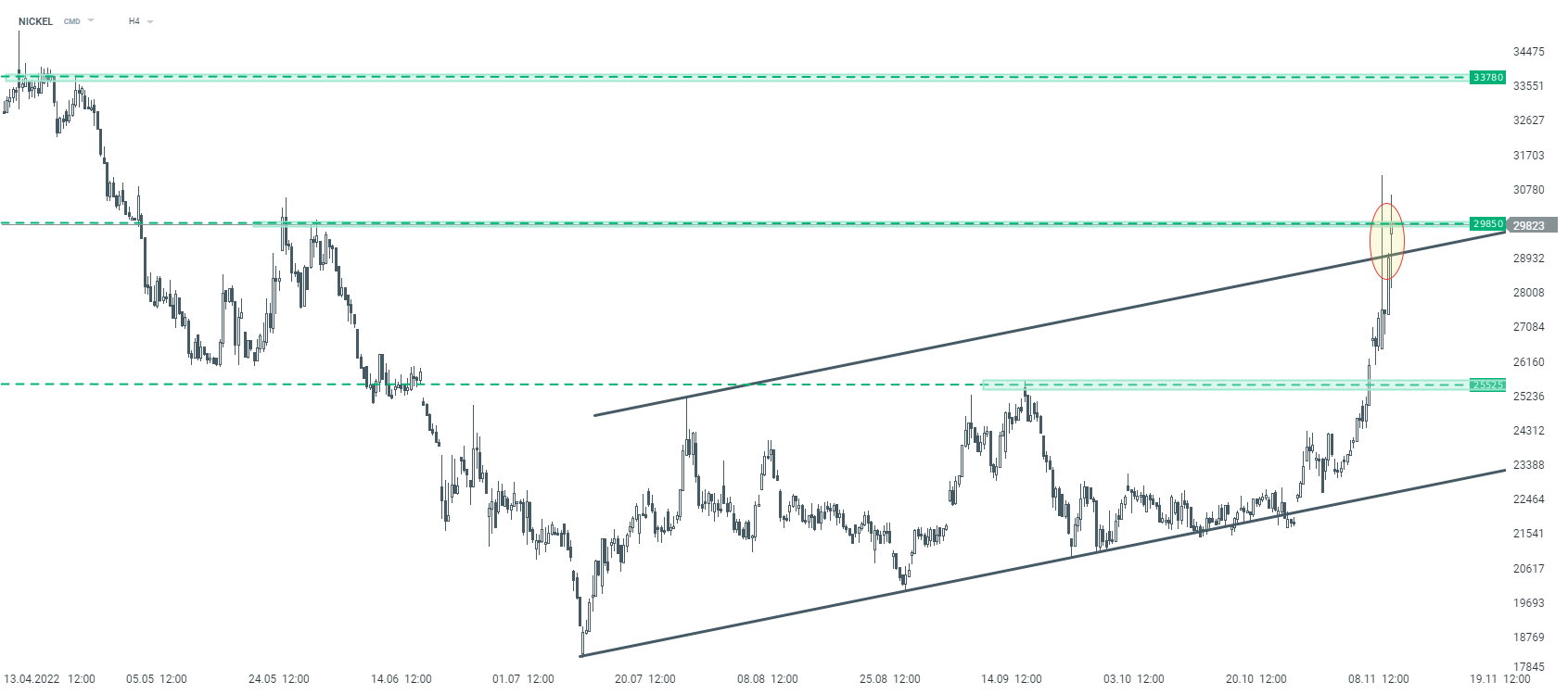 NICKEL jumped this week on reports of an explosion at major plant in Asia. While those reports were later deemed fake news, nickel managed to hold onto some of previous gains and continues to trade near 29,850 resistance zone. Source: xStation5