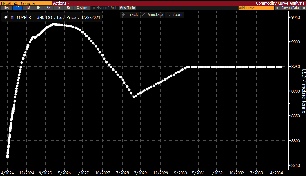 - The copper market is experiencing the largest contango in 20 years. The price for delivery in June is expected to be over $100 higher than the current price. Meanwhile, the current low price is due to the persistence of relatively high inventories, and the higher future price may be associated with expectations of lower available supply