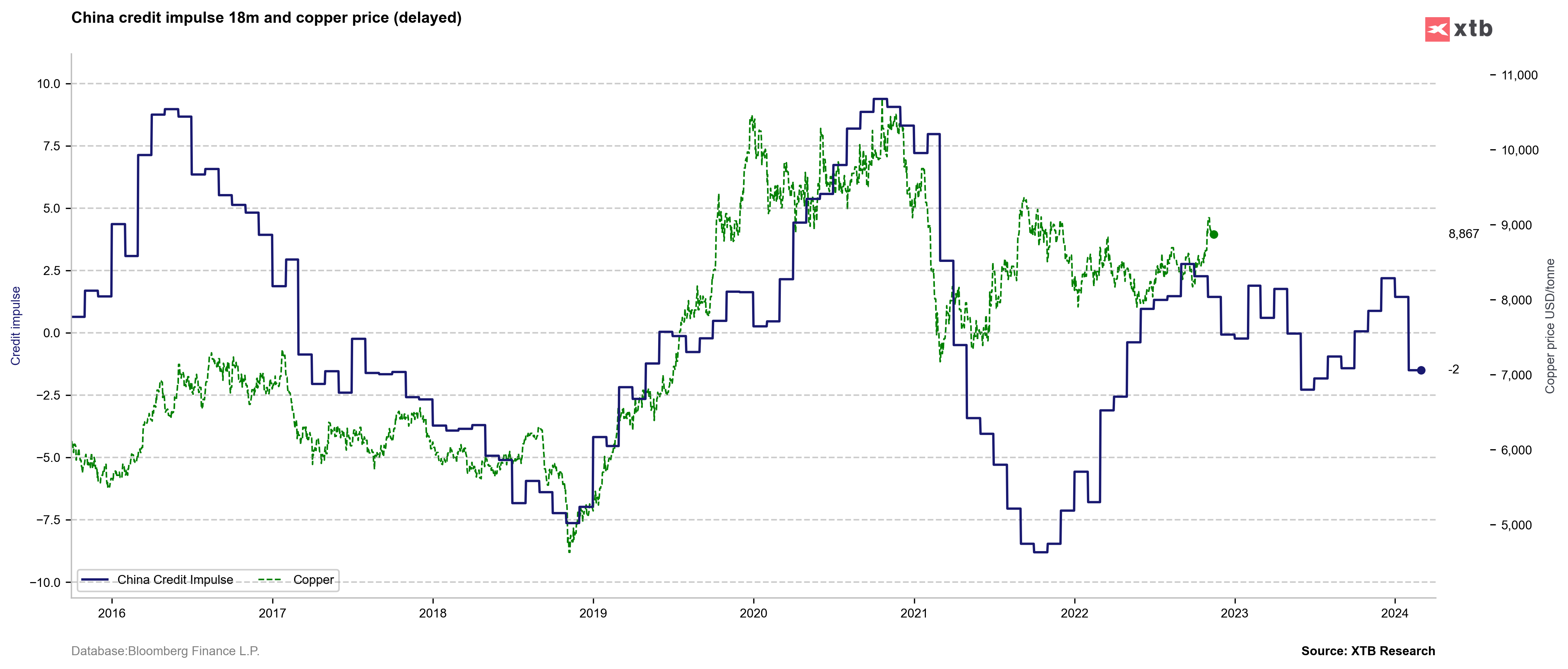 Credit impulse in China still does not indicate significant recovery. On the other hand, the expected substantial deficit in the future causes a significant increase in futures prices. Source: Bloomberg Finance LP, XTB