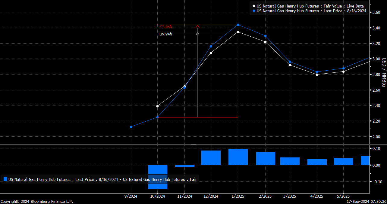 - Comparative inventories suggest that gas prices should now be higher. However, this will also be driven by the term structure of gas itself. Gas prices in January should be at $3.3/MMBTU, based on the current spot price