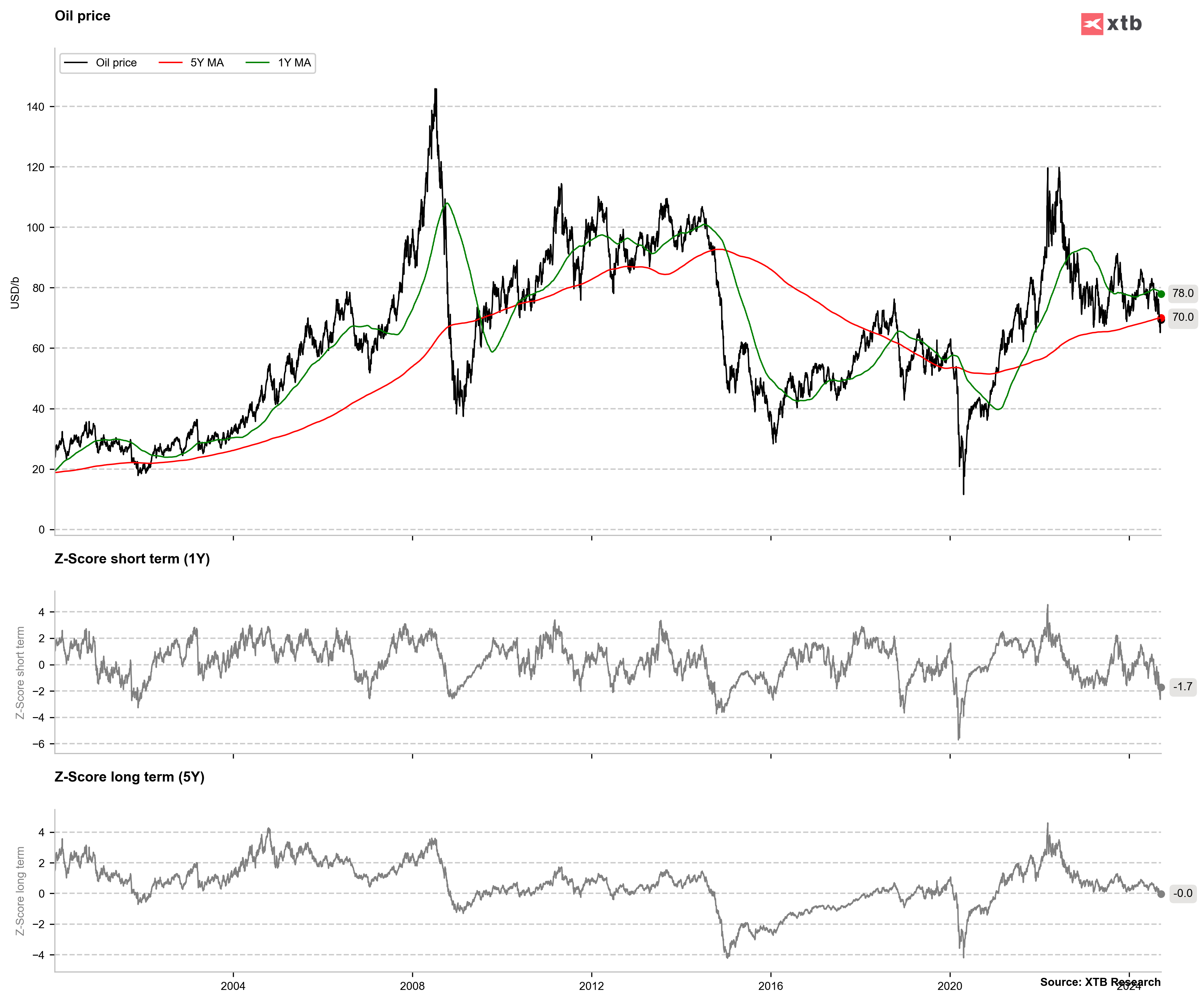 In oil, we had a short-term oversold signal, based on the deviation from the 1-year average. We also have such signals, looking at the 5-year average and price behavior from 2011-2013. Source: Bloomberg Finance LP, XTB