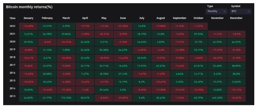 Observing BTC quotes since 2013, statistically we see that October and November were the most often positive months for the Bitcoin price, historically the worst was September. It seems that the U.S. midterms elections may prove to be the turning point, after which statistically the U.S. stock market mostly rose and did better than in the period before them. Source: Coinglass