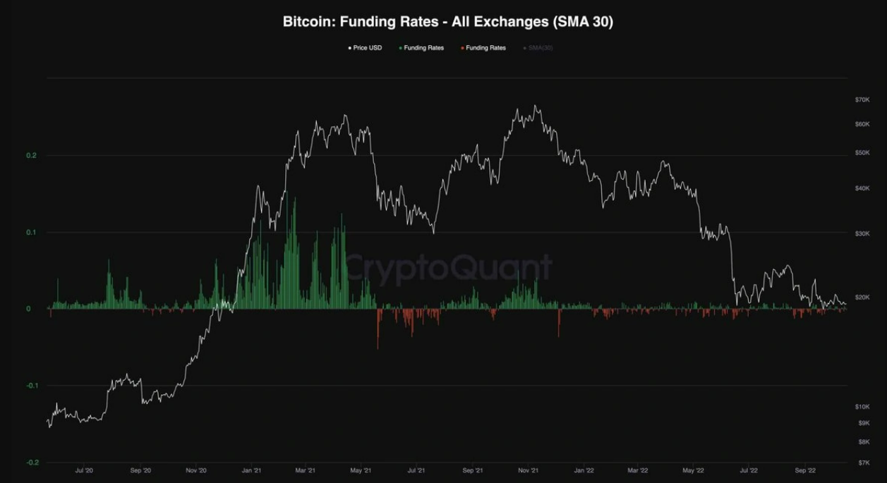The futures market is able to influence the short-term price movement of Bitcoin, the chart shows the funding rates that determine whether contract market traders are in a bearish or bullish mood. Negative funding rates indicate bearish sentiment, while positive ones indicate bullish sentiment. Currently, funding rates are still negative after falling below $22,000. The contract market is betting that bitcoin will break through to new lows. However, the market is not very liquid, which is typical of periods of consolidation, and weakens the 'message power' of the futures. The occurrence of extremely negative values may in turn increase the likelihood of a 'short squeeze', i.e. a speculative drive for the bears to capitulate by increasing their buy positions, for this, however, there would have to be a favorable investment background. Source: Coinglass