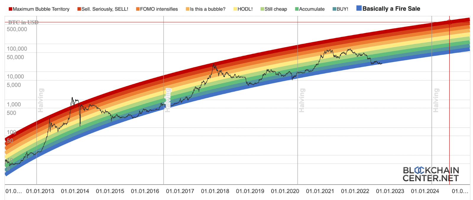 Bitcoin's famous 'Rainbow chart' shows the extreme oversold levels from which Bitcoin usually bounced. These levels proved to be bargains especially for long-term investors, as it took Bitcoin a significant amount of time to leave the trend. According to the chart, Bitcoin's next price peak will be in October 2024. Source: Blockchaincenter, Finbold