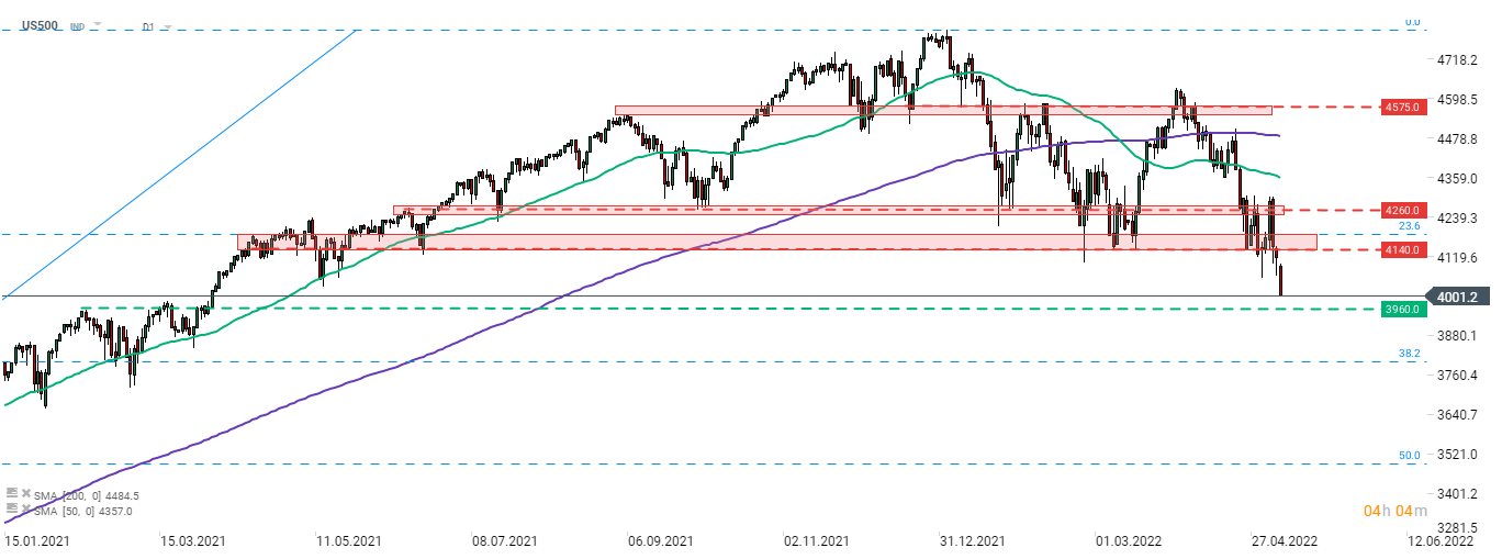 US500 tests 4,000 pts mark as risk assets sell-off on concerns over state of global economy. Source: xStation5