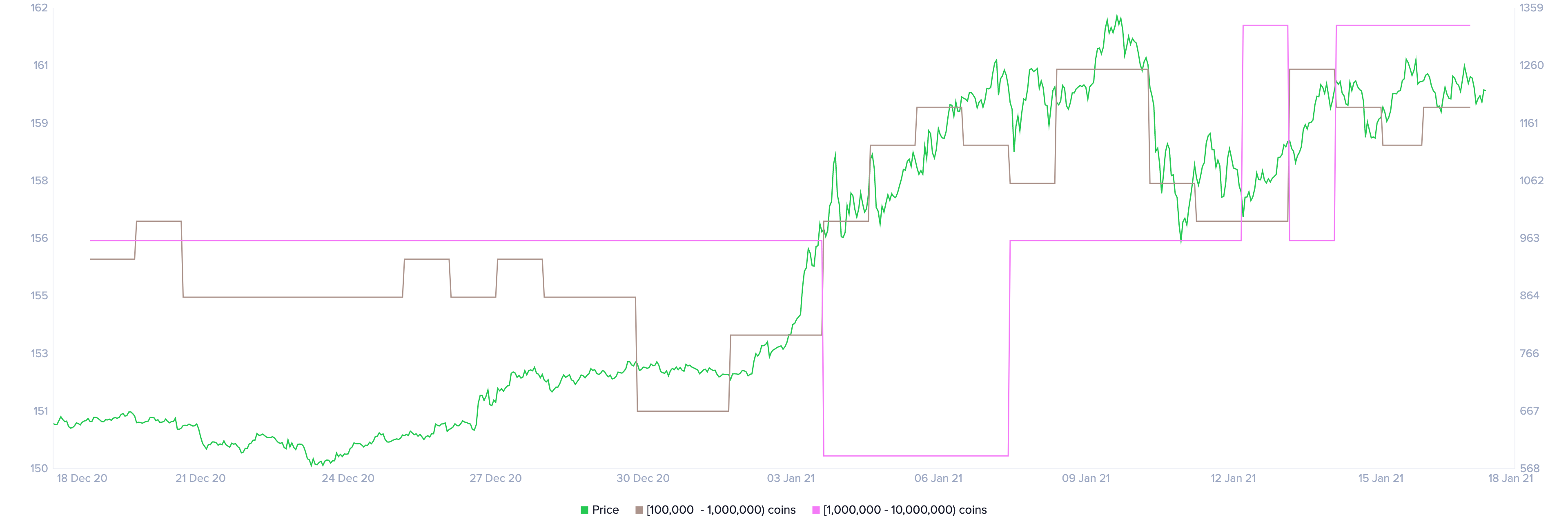 The bullish scenario is additionally supported by an increasing number of whales holding at least 1,000,000 ETH coins and large investors holding between 100,000 and 1,000,000 coins.
