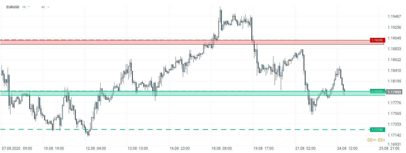 EUR/USD seesaws around 1.18 at press time. The U.S. dollar did strengthen against the euro in the afternoon while American equities managed to achieve fresh ATH. Should the current sentiment on FX market prevail, investors' attention might focus on 1.1725 area (we have seen some price reactions in the past there). Still, the 1.1800 level gives the impression of being a tough barrier and a sudden rebound is possible as well. Source: xStation5