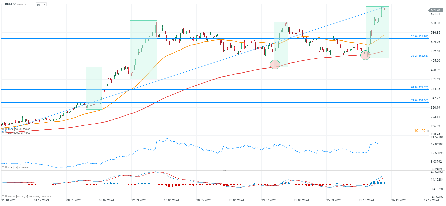 Company charts of RHM.DE , P911.DE