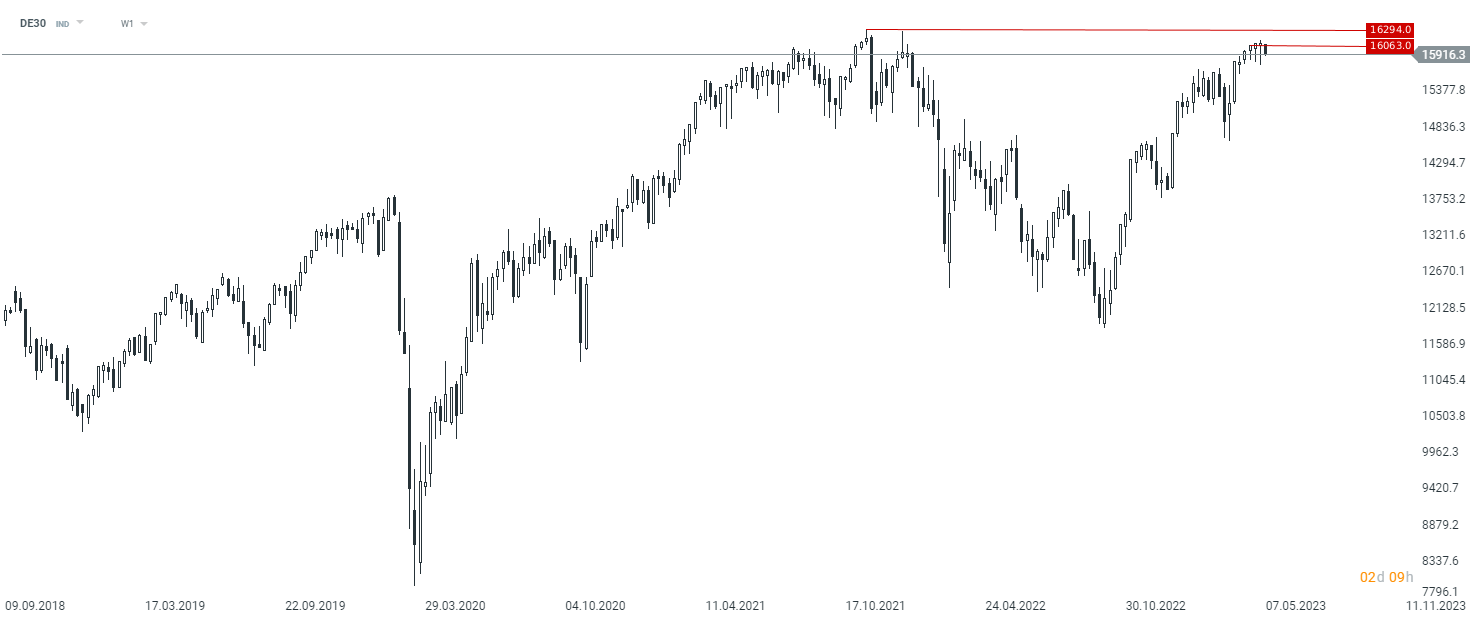 The DAX Future / DE30 is falling today and approaching the weekly low reached yesterday.