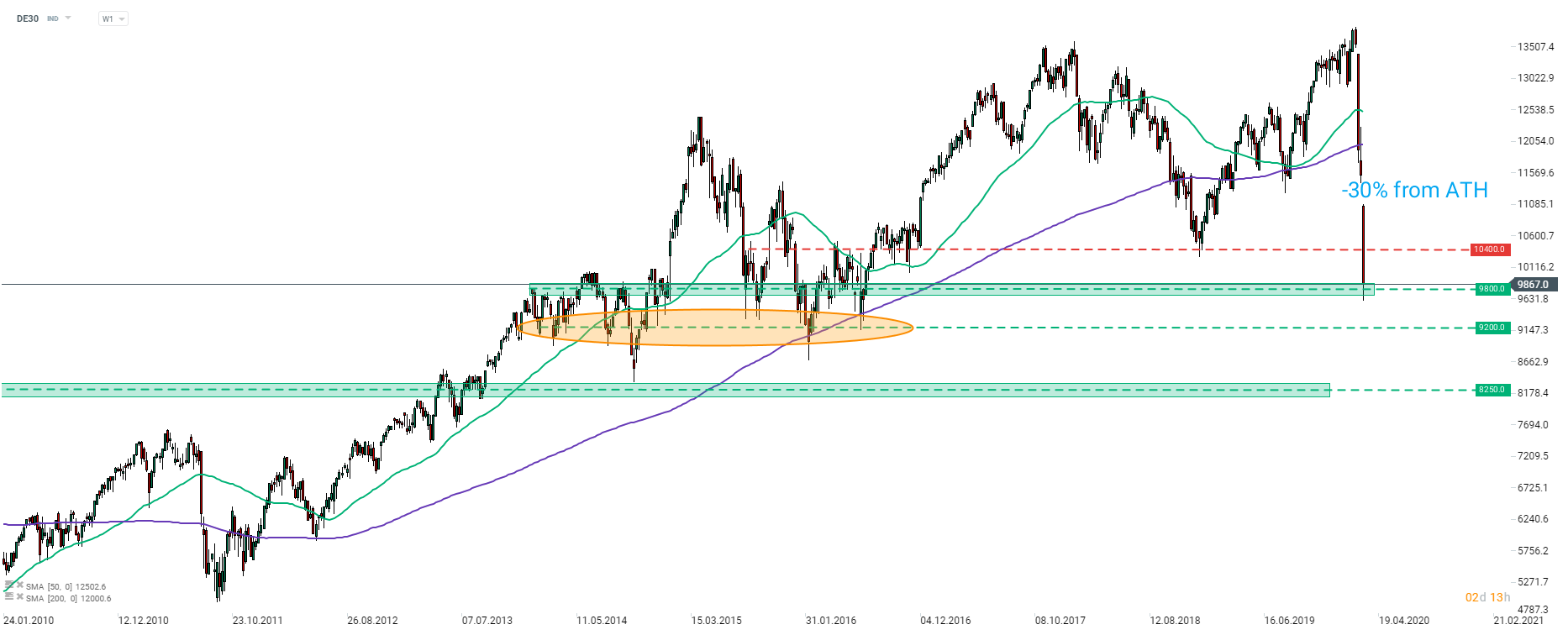 European markets are in freefall mode after Donald Trump banned Europeans from travelling to the United States. Investors are becoming increasingly nervous as the likelihood of the recession in the global economy keeps rising. Travel sector takes the biggest hit today. ECB rate decision at 12:45pm GMT has the potential to be a market moving event.