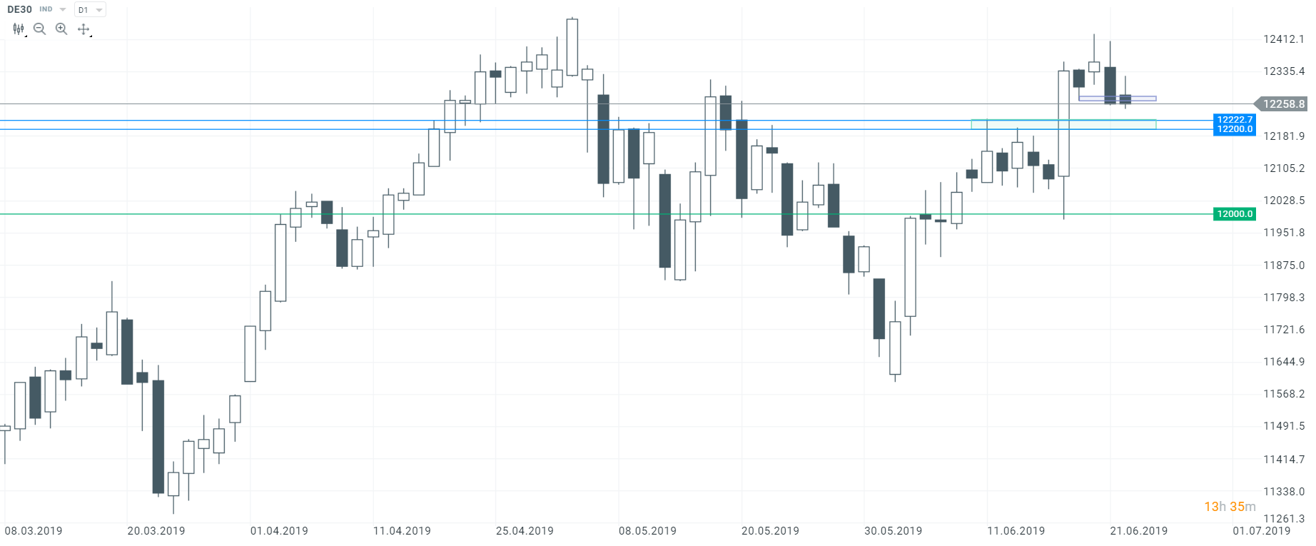 This week could be crucial for market participants due to the G20 summit in Japan and a Trump-Xi meeting which is to take place during that time (June 28). However, from a stock markets’ point of view the outcome of this meeting does not seem to be unequivocal because of the latest Federal Reserve meeting last week. Let us recall that the Fed decided to keep rates unchanged but it simultaneously (implicitly) signalled a possible rate cut in July. Nevertheless, one could read between the lines that this rate reduction (possibly arriving in the next month) will depend mainly on further developments on a trade front - therefore all appears to come down to the Trump-Xi meeting in Japan later this week. On the one hand, if both presidents find a solution to the trade dispute it should be a positive information for markets as it would reduce risks to global economic growth. On the other hand, if this happens it could mean that the Fed will want to wait some time before cutting interest rates. Looking at what has happened since the latest Fed meeting across stock markets one may suppose that a rate cut delay could act to the detriment of equities. Nonetheless, one needs to be cognizant that the Fed always delivers what markets want (this was the case in the past - when the market-based probability exceeded 50/60% for any scenario the Fed materialized this scenario). Thus, any rate cut postponement seems to be possible only if market participants reduce their expectations as for this move in July. So far this likelihood points to 100% chance for a rate cut next month.