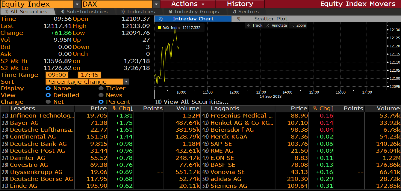 Bayer (BAYN.DE) can be found among DAX leaders today. Good performance of the stock can be ascribed to the report issued by Baader Bank. The Bank’s analysts confirmed “buy” rating for the company saying the management change in pharmaceuticals division in the late-August is positive. Baader claims that new head of the division, Stefan Oelrich, is capable of handling stress situations. Moreover, the Bank hails company’s conviction to follow its strategy, including acquisitions. Baader additionally claimed that as Bayer’s valuation is way below its long term average as well as it peers it is crucial for the management not to engage in conflicts with strategic and activist investors.