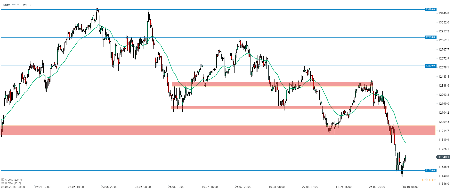 DE30 managed to defend and distance from the support level at 11500 pts. The benchmark has been steadily pushing higher this week and in case this tendency is to prevail we may see a test of the resistance zone ranging 11870-11970 pts in the near term. However, it is worth to keep in mind that the 33-period moving average (green line) lies ahead of the aforementioned zone therefore some resistance may surface there too. Source: xStation5