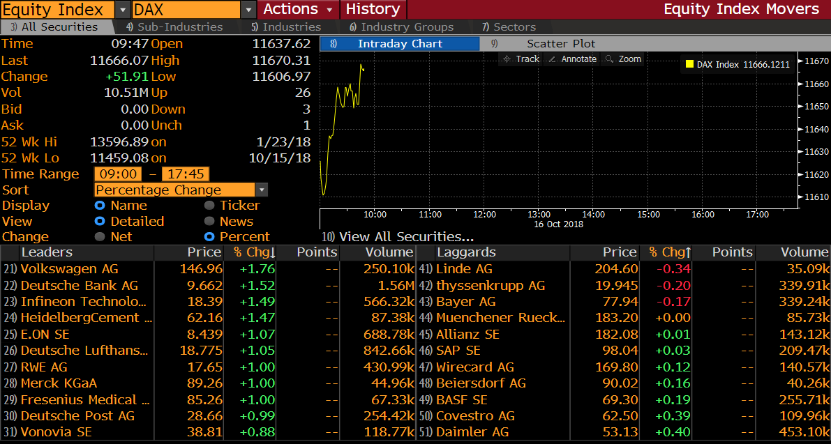 When it comes to the European politics one may expect a busy week as numerous of issues mount to be discussed. The European countries were required to submit their budget proposals by midnight yesterday and now the documents will be reviewed by the European lawmakers. The focus will be dragged to the Italian budget draft after the country’s government reinforced its message that it will not back down on its planned deficit of 2.4%. Apart from that, EU foreign affairs ministers will meet today to discuss topics ranging from the Brexit, through triggering of the Article 7 for Hungary, to next EU multi-year budget. Investors should pay attention to remarks concerning Brexit as heads of the EU state will gather for a summit tomorrow with Brexit being one the main topics on the agenda. However, the EU and the UK did not agree on any draft proposals ahead of the summit therefore it is unlikely that it will result in a major breakthrough but reports saying that the UK PM Theresa May and the French President Emmanuel Macron struck conciliatory tone are promising.