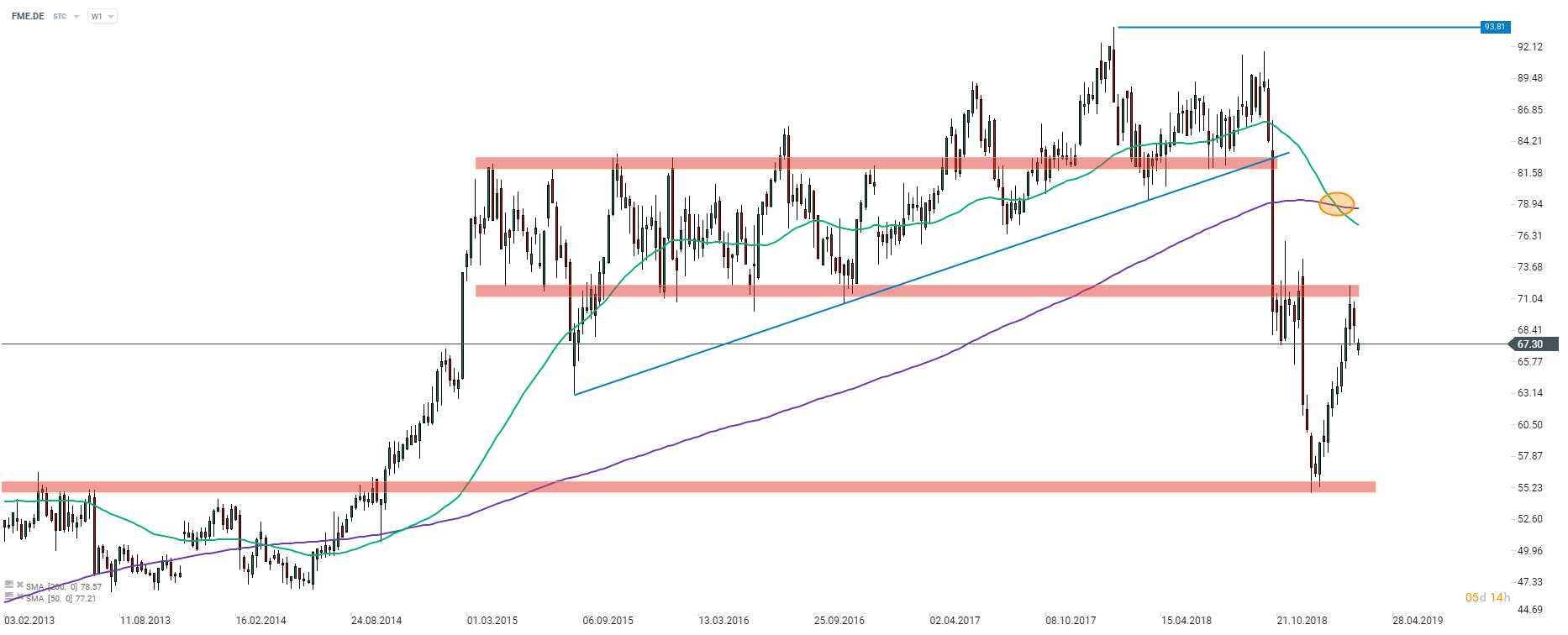 Fresenius Medical Care (FME.DE) is the worst performing DAX member today. Source: Bloomberg