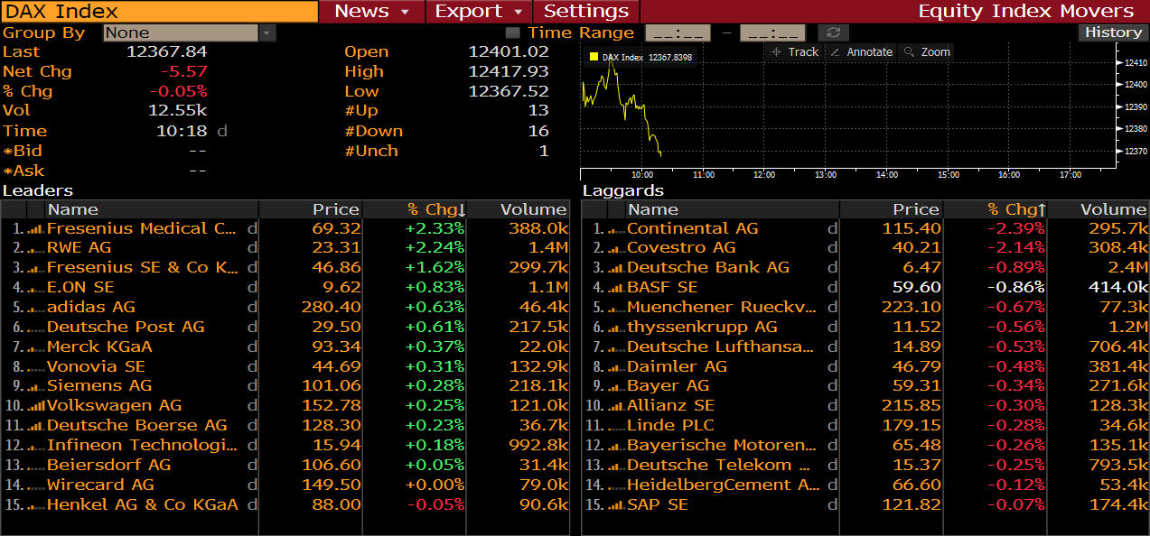 Covestro (1COV.DE) can be found among DAX biggest laggards today. The stock is pulling back following a downgrade at Lampe. Lampe’s analysts maintained “hold” rating for the stock but lowered price target from €52 to €44. The decision was reasoned with lacklustre Q2 earnings of BASF, another German chemical company. Lampe now see company’s full-year EBITDA at around €1.7 billion, down from €1.8 billion previously.