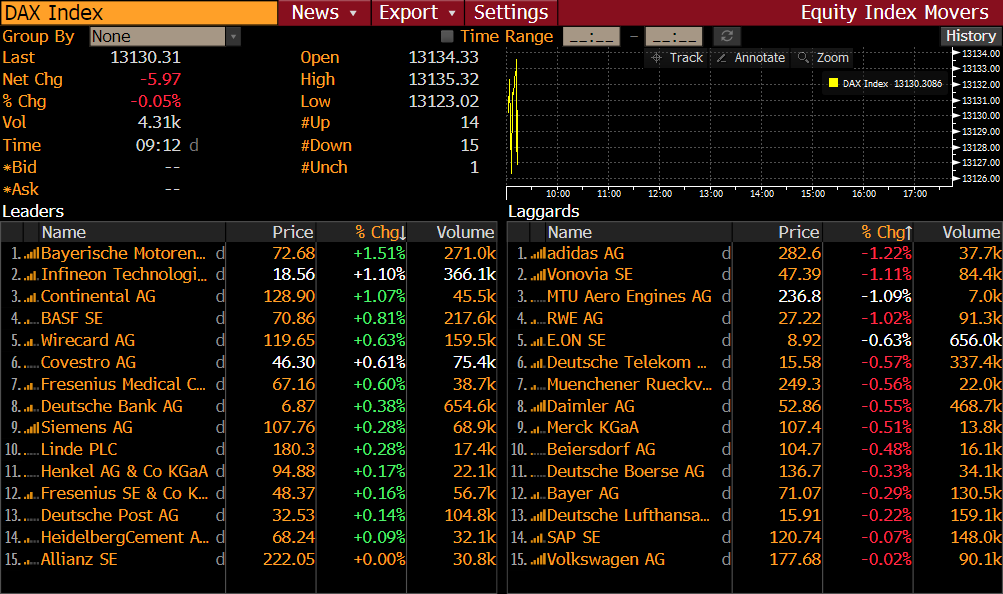 DAX members at 8:12 am GMT. Source: Bloomberg