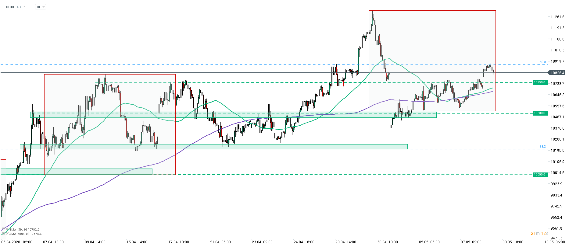 Just as DE30 finally managed to overcome resistance at 10,750 pts, the index faced another tough hurdle. Overnight rally was halted by 50% retracement of February-March drop that can be found at 10,900 pts. Brief correction after such strong gains is nothing unusual therefore there are not any reasons for bulls to worry just yet. However, in case the drop deepens and price breaks below 10,750 pts (key near-term support for now), things may turn ugly. Keep in mind that today's jobs data from the United States can be a catalyst for a big move as reading is expected to be catastrophic. Staying above 10,750 pts till the end of the day can be considered bullish. Breaking below 10,750 pts would pave the way for the drop towards 10,500 pts - the lower limit of the Overbalance structure and final support.